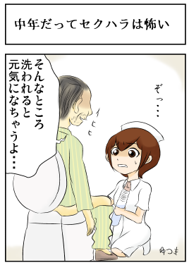 患者さんからのセクハラって、無くはないですけれど具合悪くて入院されているわけで、触ってくる系が多いですね。二の腕とか、胸とか、太ももとか。あとは抱きついてくる系ややたらと摘便を要求するとか。最近は同僚がキッスされちゃう事件もありました。年齢を重ねることで頻度は低下してきましたが…やっぱり怖いですね。最近は男性の看護師も増えてきているので、そちらへのセクハラもあって。またそれはそれでまたそのうち。
